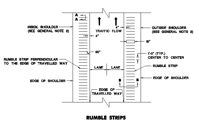 If you're looking for New Jersey rumble strips specifications, below are pdf files from NJ Department of Transportation. These file(s) show specs for shoulder rumble strips, centerline rumble strips, continuous rumble strips, intermittent rumble strips, as well as rumble strip depth, width, spacing and locations.